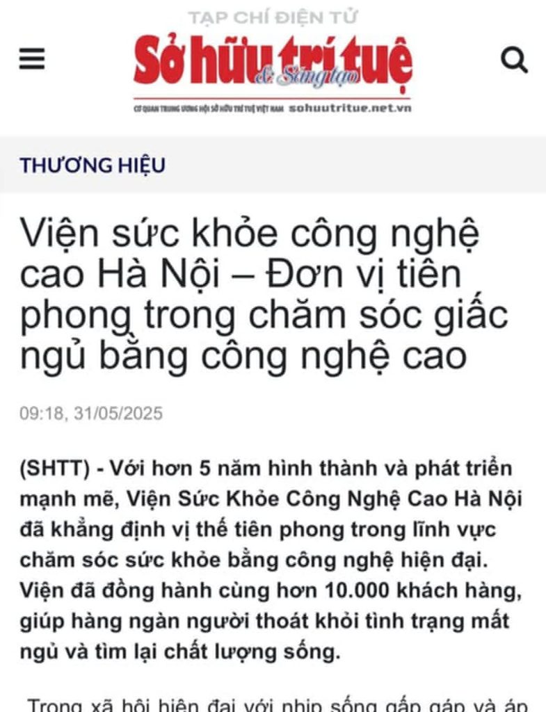 Là đơn vị tiên phong trong lĩnh vực chăm sóc và cải thiện sức khỏe bằng công nghệ cao, Viện Sức Khỏe Công Nghệ Cao Hà Nội tự hào đã được THƯƠNG HIỆU & Pháp Luật và Truyền hình Quốc gia đưa tin như một điểm đến uy tín hàng đầu cho cộng đồng.